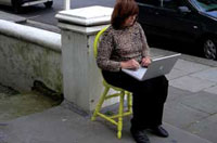 "My WiFi network is open for neighbours and passers-by. Free access from the yellow chair." By placing a sign with this message in front yard of her home, along with a yellow chair, Anab Jain, invited neighbours and passers-by to use her open wireless network outside her house creating a ムliveメ grass roots design project which challenges the idea of open networks being largely virtual and often impersonal.